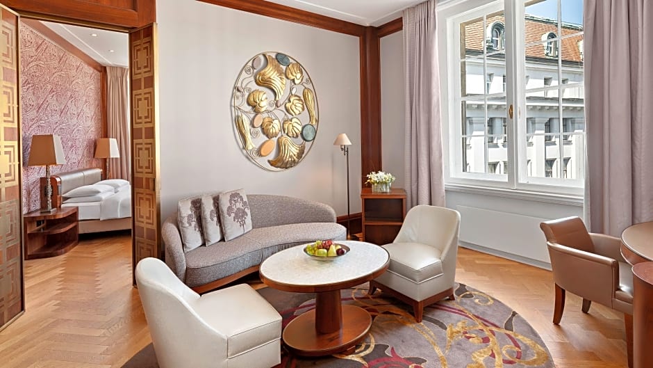 This spacious suite includes the luxurious Ambassador Suite as well as a 1 King Bed View Deluxe and a 1 King Bed. The generous guestrooms come with ample space across three bedrooms and feature timeless elegance. Art Nouveau decorations and unique design elements add to the famous Viennese charm. Return to this delightful Suite after a pleasant city stroll and enjoy the utmost in comfort. Rooms are 184 square yards.